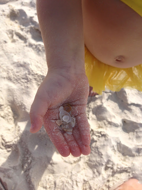 Sunday, October 14, 2012~ Everyone else in our crew left this day, but thankfully we had planned on not leaving until Monday. Our plans were to spend the day at the beach, but when we got up it was overcast & sprinkling. So we opted to go to the outlets instead. We shopped for Lucy a birthday outfit. No luck! It shouldn't be this hard to find a cute yellow/gray outfit! There is a playground and carousel in the middle of the outlets. Bella had a ball! This is the 1st time she's ridden the carousel and enjoyed it, without being scared. On our way back, both the girls passed out! After they got in a cat-nap in the truck we changed clothes and headed out for more fun. We went to the pool/splash pad thinking Bella would enjoy it. There were other kids running around, so she was hesitant about playing. She started whining. We decided that if she wasn't enjoying it that we were going to do what we enjoyed. We loaded up and went to the beach. We had so much fun!! The waves were pretty big. And there were no jellyfish or seaweed (if I get a glimpse of either-you won't see me in the water). Jacob and I played out in the water like we were little kids! We built sand castles, fed the birds, then chased the birds away. It wasn't crowded. It was perfect! We rinsed off the sand & salt, changed clothes and ate dinner at LuLu's. Bella ate and loved some crab claws! Jacob and I tried the blackened Mahi-Mahi. It was good! We sat up close to the loud band. The girls danced.